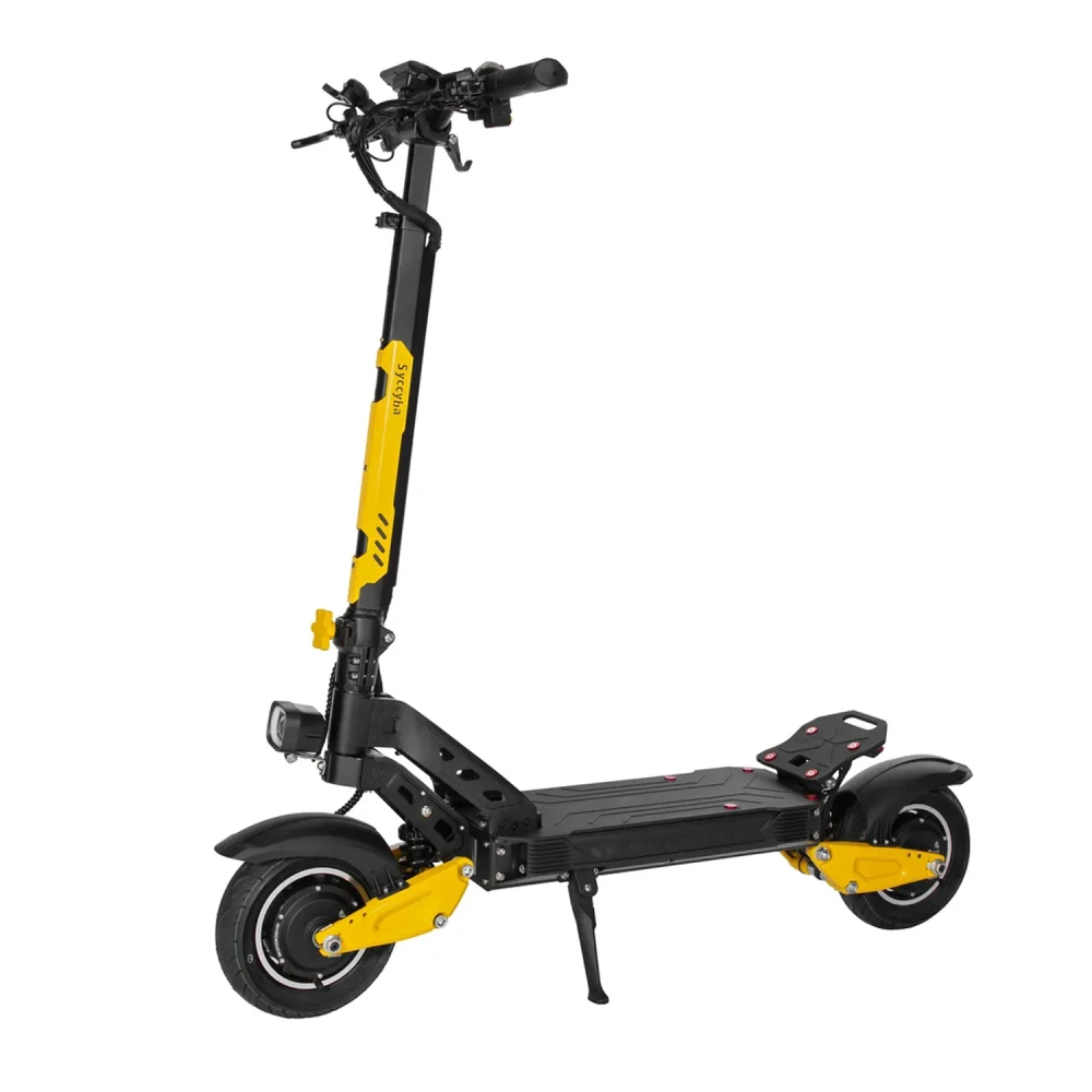 Syccyba Flash Mono — не просто электросамокат, а настоящий прорыв в персональной мобильности. Мощность устройства, стильный дизайн с яркими желтыми акцентами и продуманная функциональность делают его идеальным выбором как для повседневных поездок, так и для увлекательных приключений.