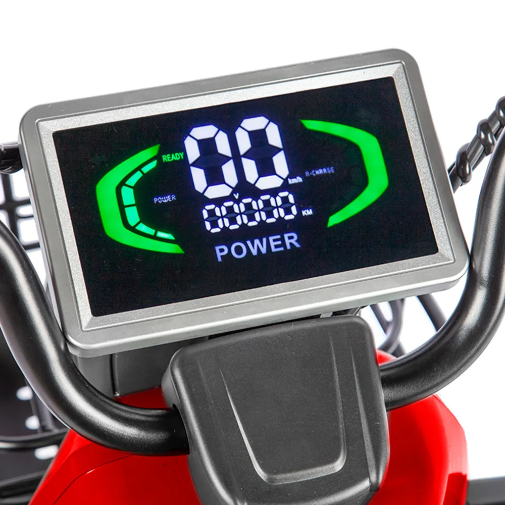 Электротрицикл Rutrike Топик красный – лучший вариант для активного отдыха с друзьями, туристического бизнеса, развлечений в частном секторе. Вместительная модель позволяет насладиться природой, свежим дуновением ветром, притоком дополнительной энергии. Для заказа техники по приемлемой цене выгодно предлагаем связаться с менеджером нашего магазина по телефону или в чате. Мощность электромотора составляет 800 Вт. Батарея в комплектации отсутствует. Производитель предупреждает, что для данной модели трицикла необходимая емкость аккумуляторной батареи составляет 48 В и 60 В. Купить АКБ можно самостоятельно и через наш интернет-магазин. Последний вариант считается более выгодным. Техника оснащена комфортабельными сиденьями. Под последним имеется грузовой отсек. Водительское сиденье из эко-кожи с подлокотниками и спинкой, анатомическое, удобное, не вызывает дискомфорта. Для исключения отека ног модель оснащена мягкой прорезиненной платформой. Управление трициклом простое. Не требует специального обучения. Функционал размещен на рулевой части. Колесная часть 3.00-R10 – накатистая и устойчивая одновременно. Оснащенность гидравлической пружинной подвеской делает движения мягкими по неровностям. Для заказа трицикла быстро, предлагаем сделать телефонный звонок менеджеру или написать ему сообщение в чате.