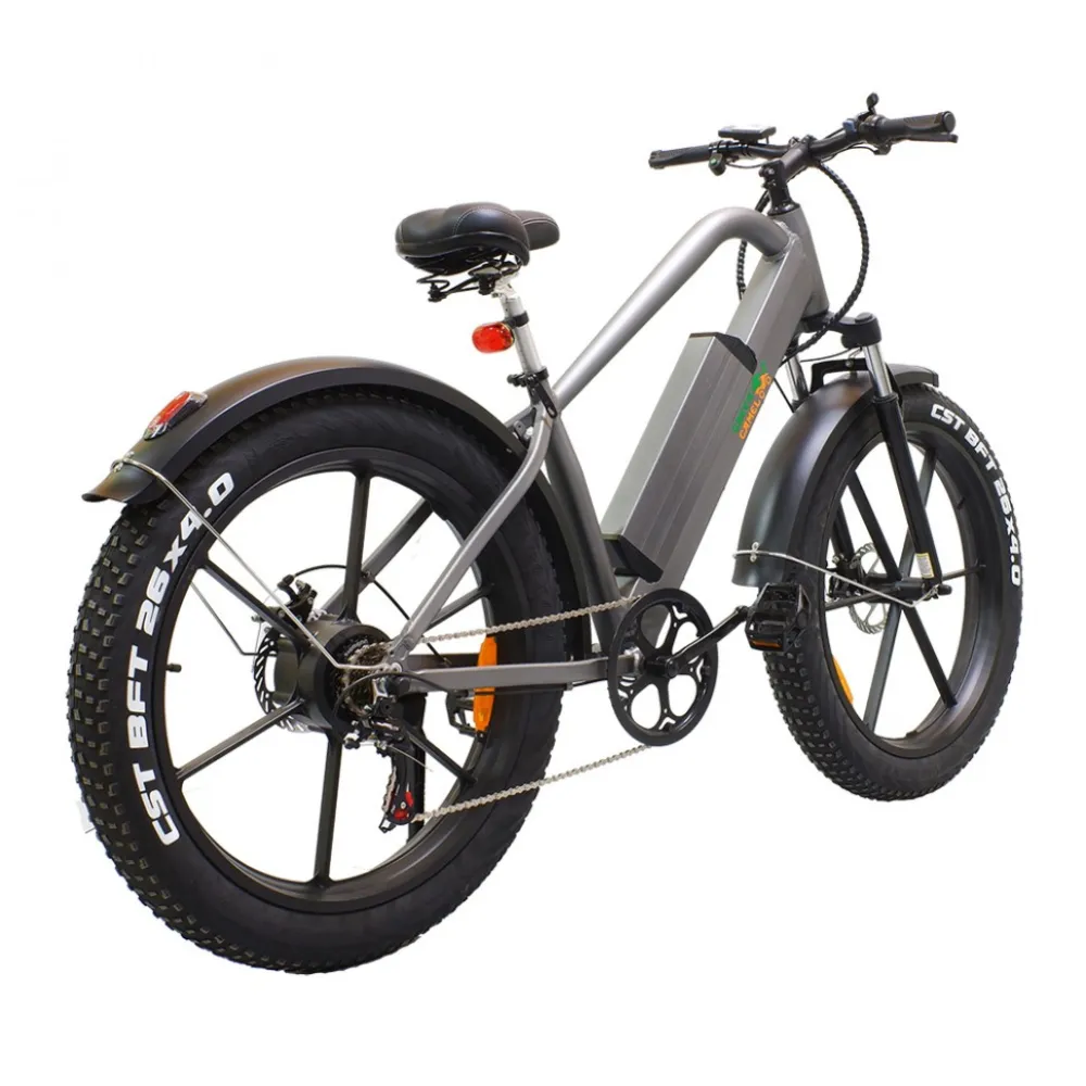 Купить Электровелосипед Грин Кэмэл Хищник (R26FAT 500W 48V 10Ah) Алюм, 6скор в сером цвете стал несомненным лидером продаж. Модель выглядит строго и модно одновременно. От техники исходит сила и мощь. Велик создан для любителей высокой скорости и выброса адреналина. Покупка электровелосипеда сделает отдых разнообразным, поможет забыть о проблемах прошедшего дня и ощутить, что такое порыв свежего воздуха.
