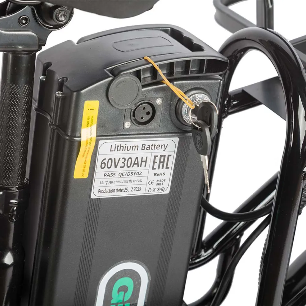 Электровелосипед Eltreco Gelbert Khan Monster 2 – это современное средство передвижения, сочетающее в себе продуманную конструкцию, передовые технологии и стильный дизайн для уверенных городских и пригородных поездок.Модель оснащена передним и задним амортизаторами, которые эффективно смягчают неровности дороги, обеспечивая плавность хода и комфорт даже на пересеченной местности. При заявленном максимальном пробеге до 100 км на одном заряде этот велосипед подходит для длительных поездок – конечно, реальные показатели зависят от веса райдера, рельефа местности, погодных условий и температуры окружающей среды.Безопасность обеспечивается за счет дисковых гидравлических тормозов, которые гарантируют надежное и своевременное торможение в любых ситуациях. Легкий вес в 57 кг позволяет легко маневрировать, а максимальная нагрузка до 150 кг делает модель универсальной для разных категорий пользователей.Двигатель мощностью 240 W, размещенный в задней части, обеспечивает эффективное ускорение и оптимальное распределение энергии, что способствует стабильной работе в условиях городской среды. Электровелосипед оборудован аккумулятором с емкостью 30 Ah и рабочим напряжением 60 V, что гарантирует долгий срок службы батареи и надежную работу даже на длинных маршрутах.Габариты в собранном состоянии – 1700×1150×800 мм – обеспечивают удобное расположение для водителя, а использование качественной стали в конструкции гарантирует долговечность и надежность всей системы. Дополнительное оснащение включает зеркала заднего вида, которые повышают безопасность, а встроенные передние и задние габаритные фары обеспечивают отличную видимость в условиях недостаточной освещенности.Стоит отметить, что данная модель не является складной, что подчеркивает ее прочную и стабильную конструкцию, рассчитанную на долгосрочную эксплуатацию. Электровелосипед Eltreco Gelbert Khan Monster 2 – это оптимальное решение для тех, кто ищет сочетание высоких технологий, надежности и комфорта в одном устройстве.