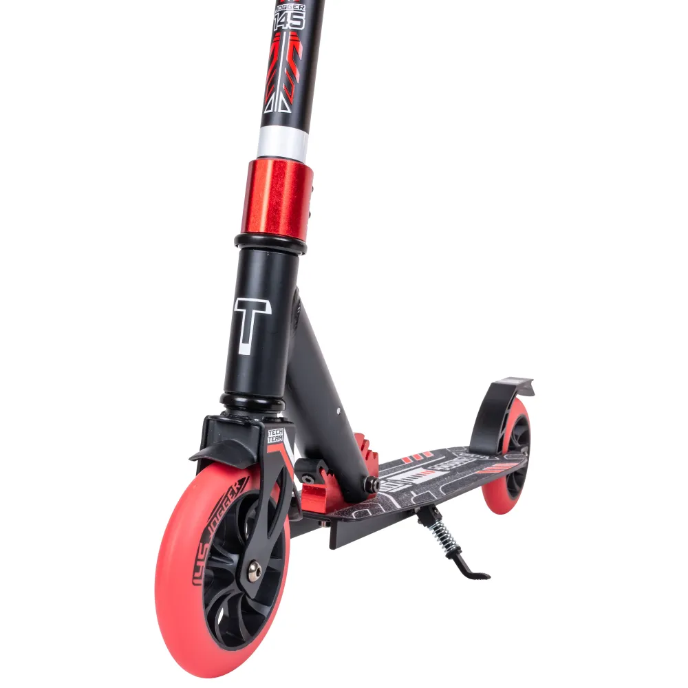 Самокат Tech Team JOGGER 145 в черно-красном цвете – шикарный вариант техники по приемлемой стоимости. Купить хит сезона 2022 выгодно предлагает наш интернет-магазин. Самокат предназначен для пользователей от 5-летнего возраста и старше. Имеет массу 3,75 кг, грузоподъемность – до 50 кг. Модель – трансформирующаяся, практичная в транспортировке. На сегодняшний день считается лучшим вариантом городской техники.